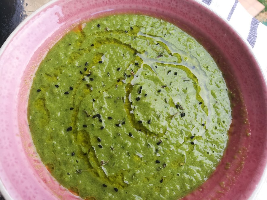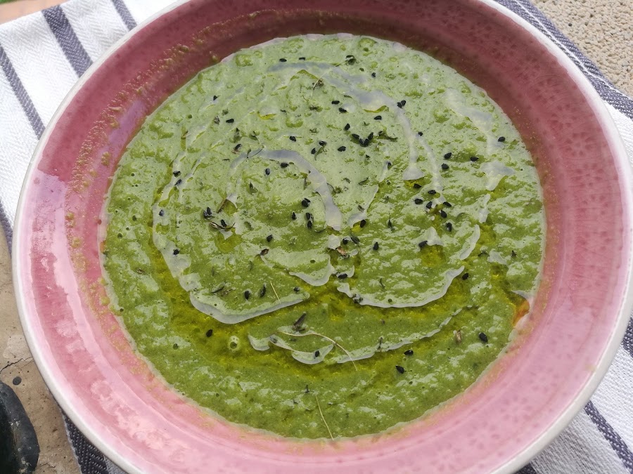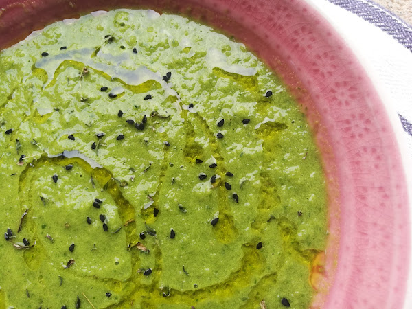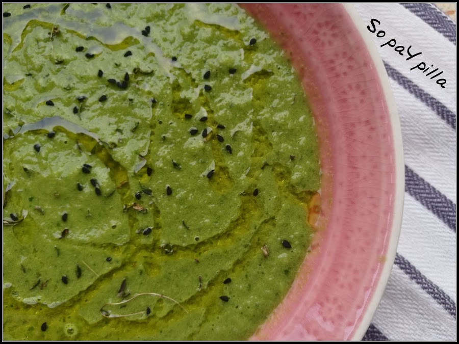 - Triturar todos los ingredientes con la batidora, o en la THERMOMIX 1 minuto V.10