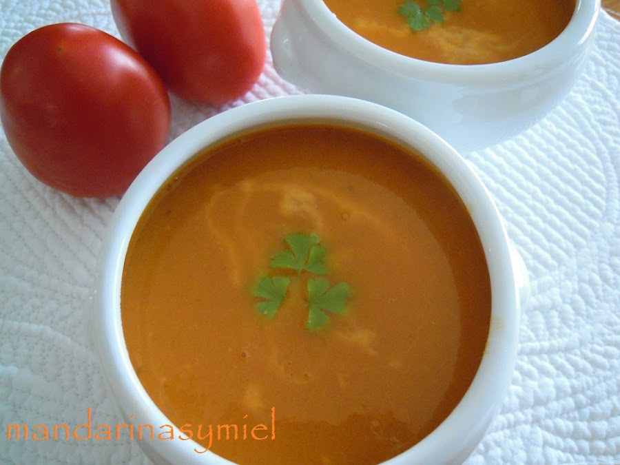 Esta crema de tomate queda muy suave y con el aroma del estragón está increiblemente buena!!!