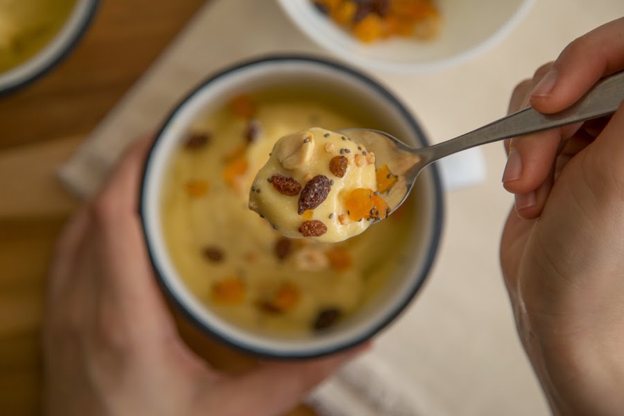 Este helado es tan rico que no necesita de nada más, no necesita endulzantes ni nada. Pero si quieren hacerlo más saludable, pueden acompañarlo de toppings ricos como por ejemplo, de fruta picada, frutas deshidratadas, semillas y frutos secos.