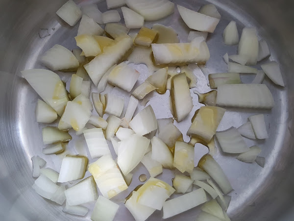 1. - En primer lugar pelaremos y trocearemos la cebolla y la ponemos a sofreír con un poco de aceite a fuego medio.