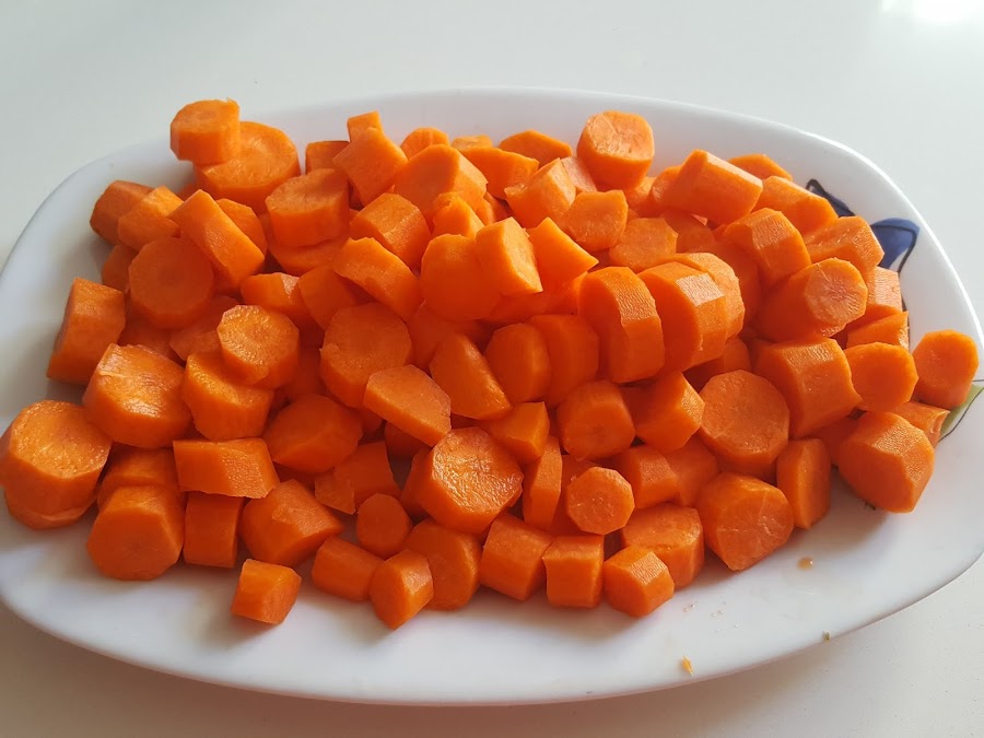 2. - Mientras, pelamos y troceamos las zanahorias.