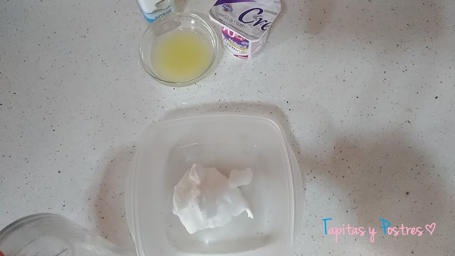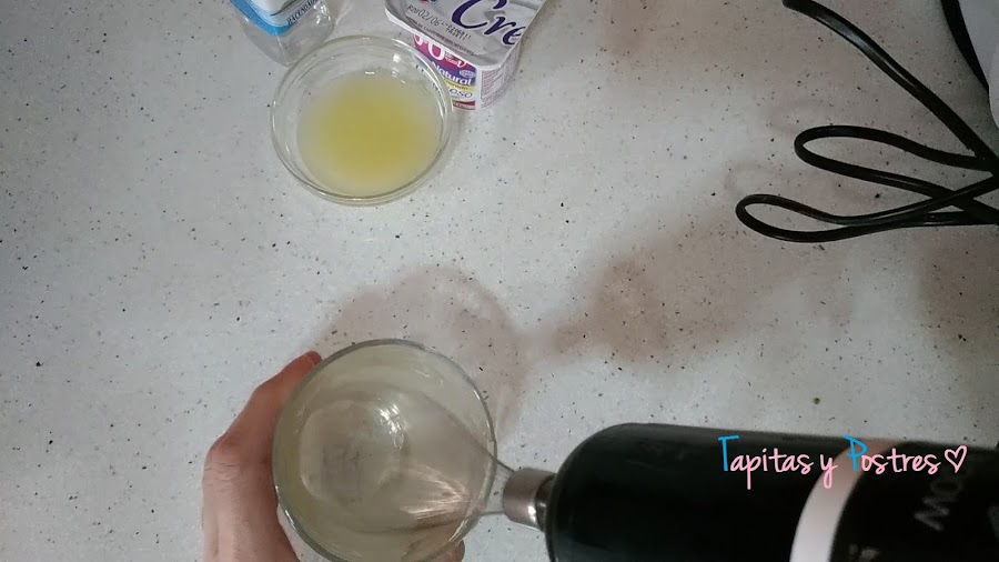 Montamos la clara a punto de nieve. La reservamos en un recipiente.