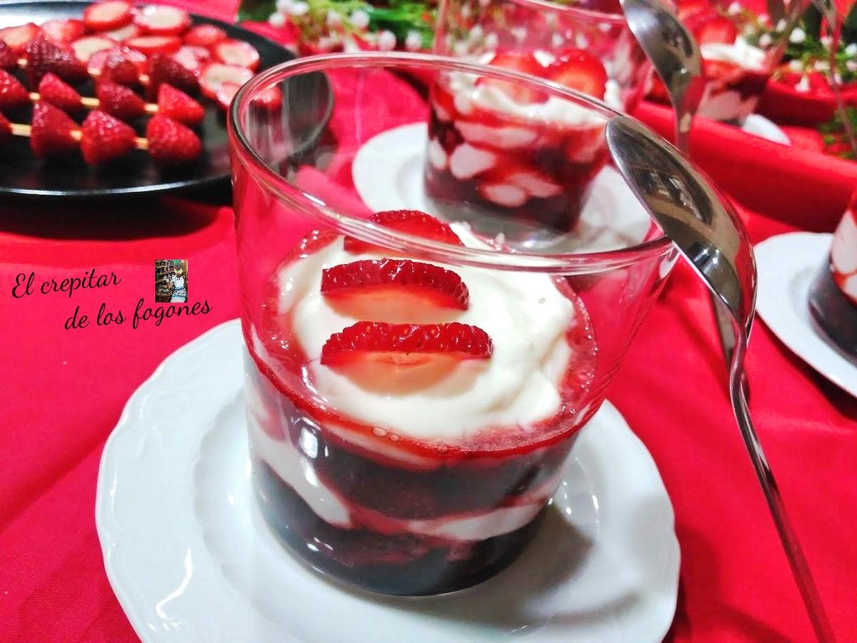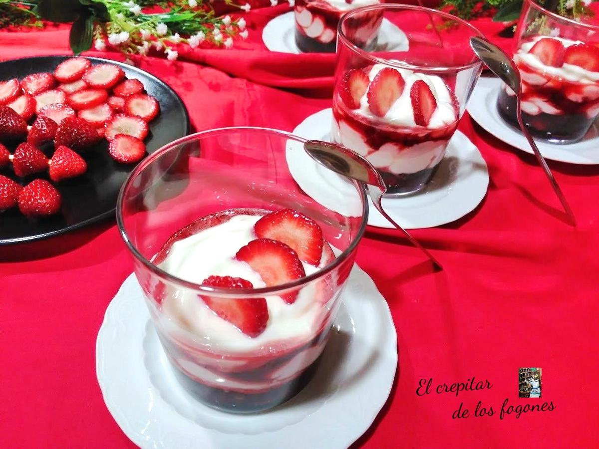 El otro día mi marido trajo a casa una caja de fresas recién recogidas de la huerta, ¡¡ummmmm que ricura!! Con ellas he preparado una mermelada de fresas casera que está para quitar el sentido. En realidad estaba porque con ella hice este postre, suave y cremoso, digno de cualquier festín.