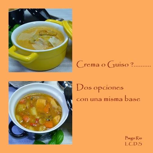 En casa hay diversidad de opiniones sobre las cremas o guisos , asi que para que la comida esté al gusto de todos los paladares , haremos una rica crema o la dejaremos como un guiso para aquellos a los que "la textura crema" no les seduce en absoluto y prefieren los tropiezos.