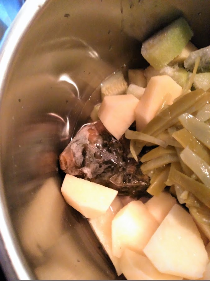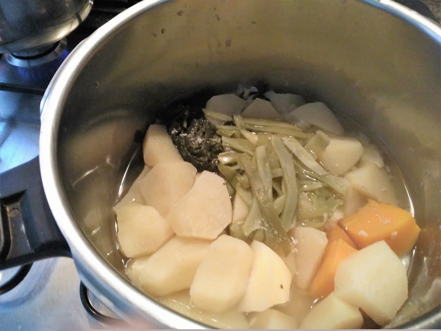 Yo lo hice en una olla rápida, como veréis muchas verduras las tengo congelas, el motivo no es otro que en el verano hay huerta se cogen muchas hortalizas y verduras, yo muchas cosas congelo en bolsitas me valen para estas cremas o purés..durante una temporada.