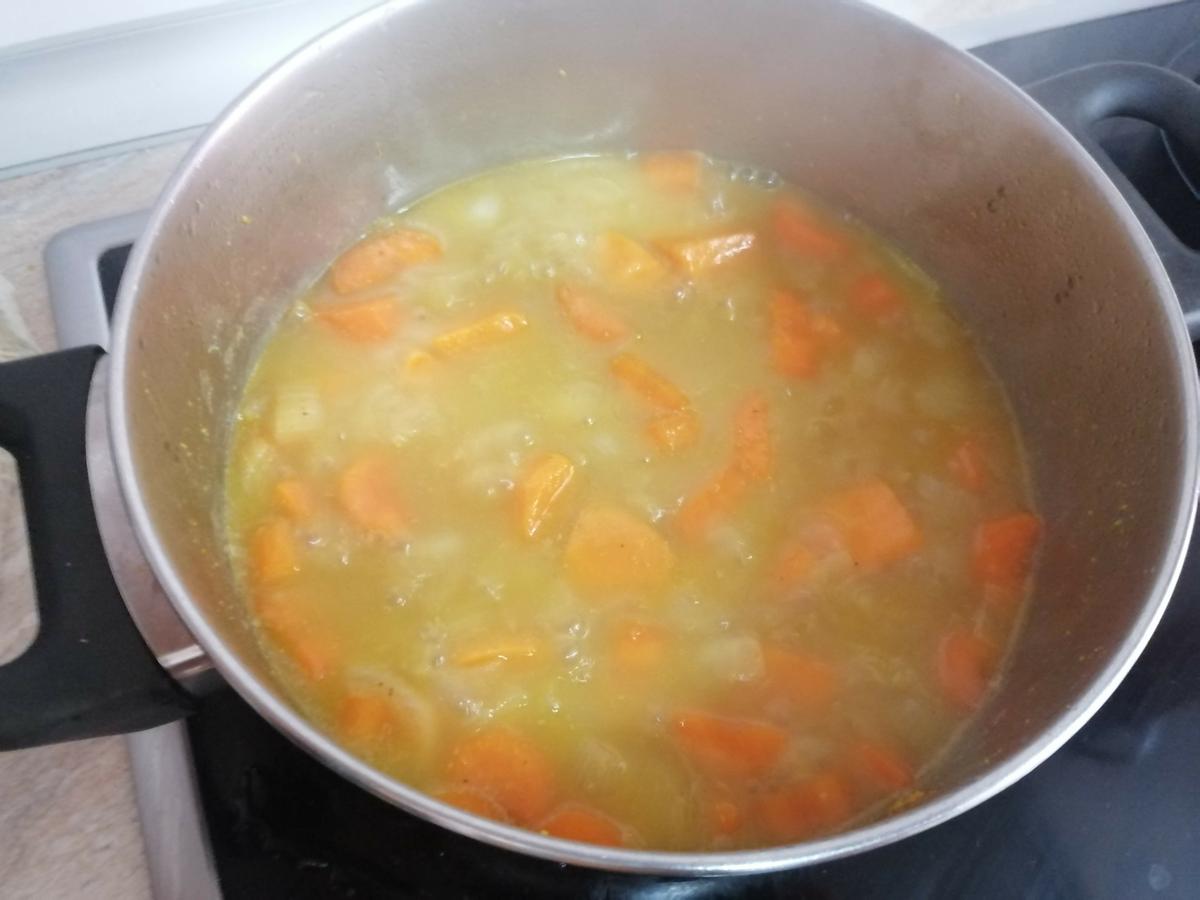 Vete probando el punto de sal e incluso puedes rectificar los sabores al gusto con más curry o jengibre.