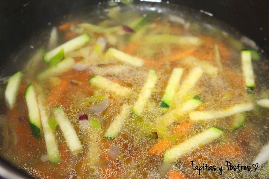 Y agregamos el agua y cocemos a fuego lento. Al acabar trituramos.