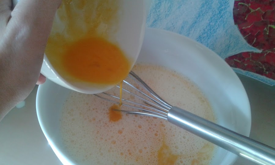 A continuación se pone a hervir la leche con la canela y la piel de limón, cuándo empiece a hervir se deja un poquito y se añade despacio a la mezcla anterior.