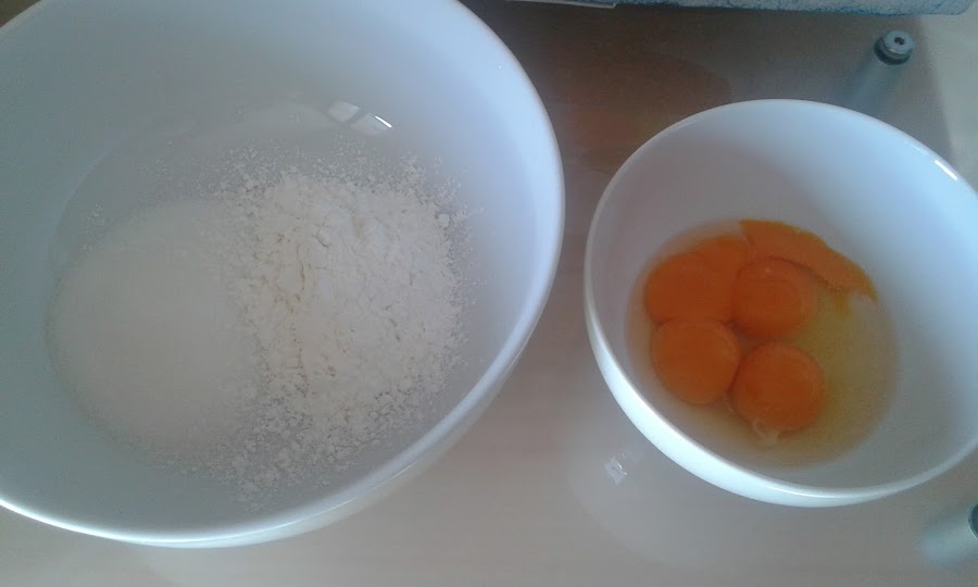 Aclaración:en los ingredientes de la foto tiene un huevo de más, porque aumenté los ingredientes en 1/3. Pero con los ingredientes que os pongo a continuación son suficientes para rellenar una capa de una tarta y es la receta original.