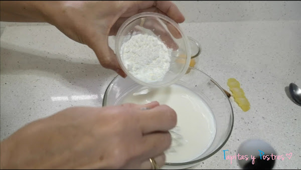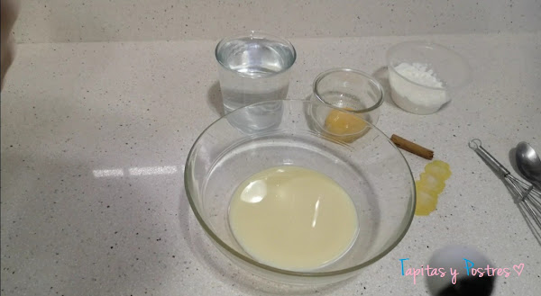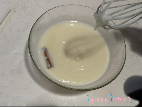 Los ingredientes: leche condensada, agua, yema, maicena, canela y piel de limón.