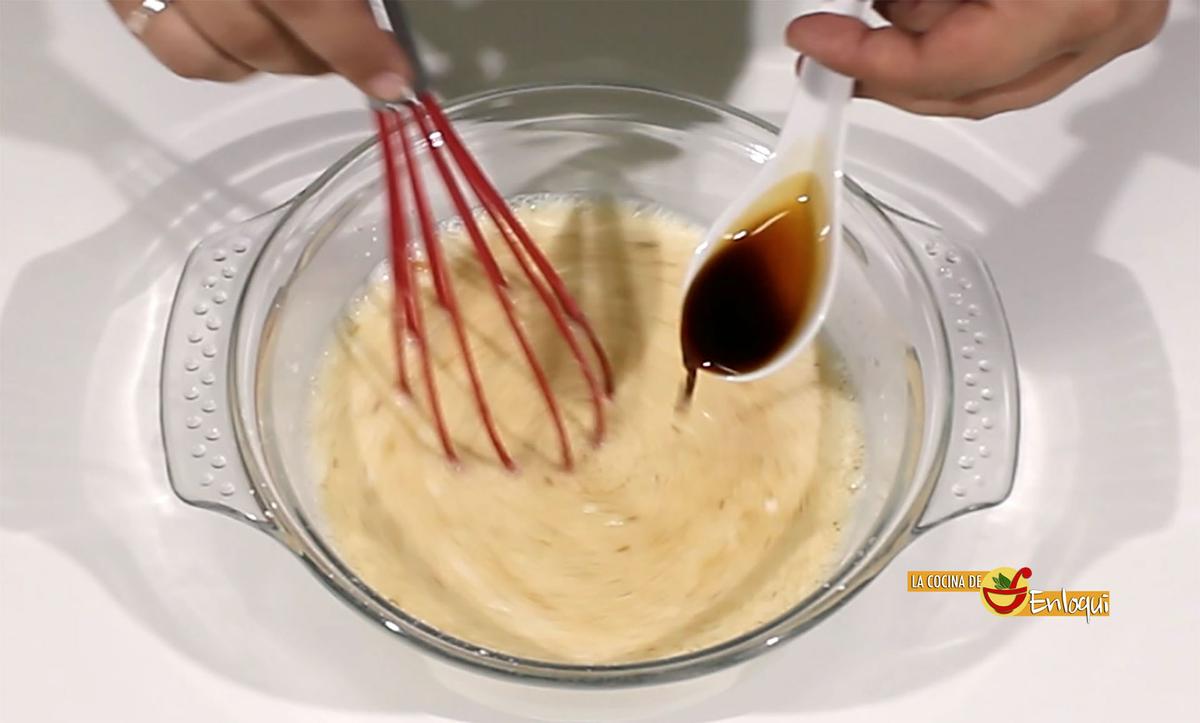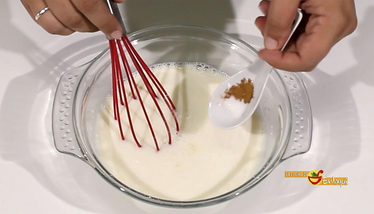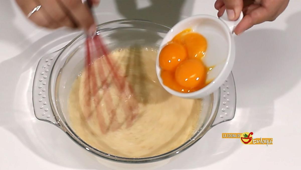 En el último momento, y cuando todos los ingredientes anteriores estén bien mezclados, añade las yemas de huevo. Bate para que se mezclen por completo y quede un resultado homogéneo.