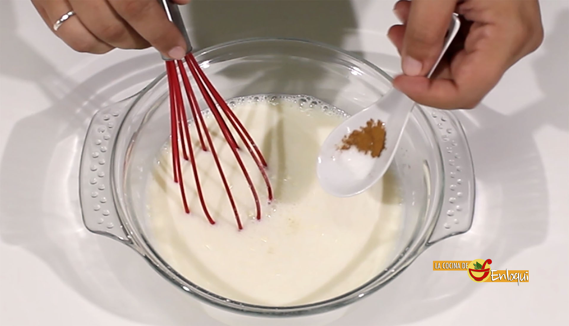Ahora añade a la mezcla una pizca de sal y otra pizca de canela. Sin dejar de remover pon también la esencia de vainilla. Estos ingredientes serán los responsables de que la crema pastelera tenga un sabor espectacular.