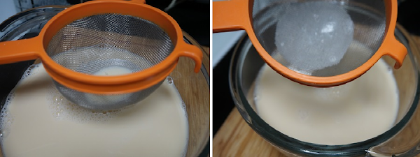 Colamos la mezcla pasándola a un bol apto para microondas.
