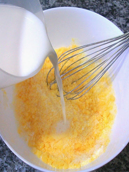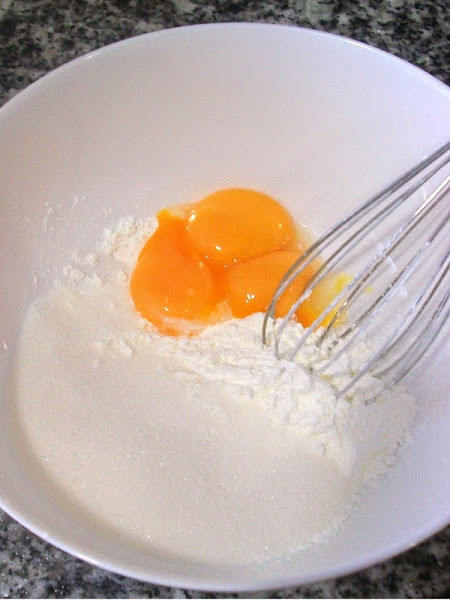 1- Con las varillas de mano mezclamos la maizena, el azúcar y las 3 yemas.