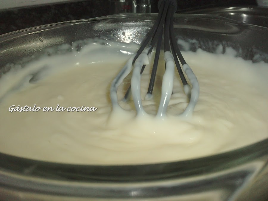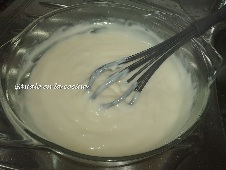 En un bol apto para microondas ponemos todos los ingredientes y batimos bien para disolver el azúcar y la maizena.