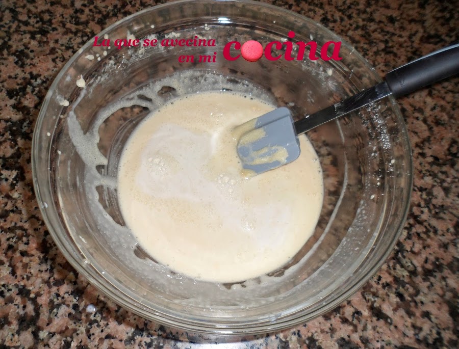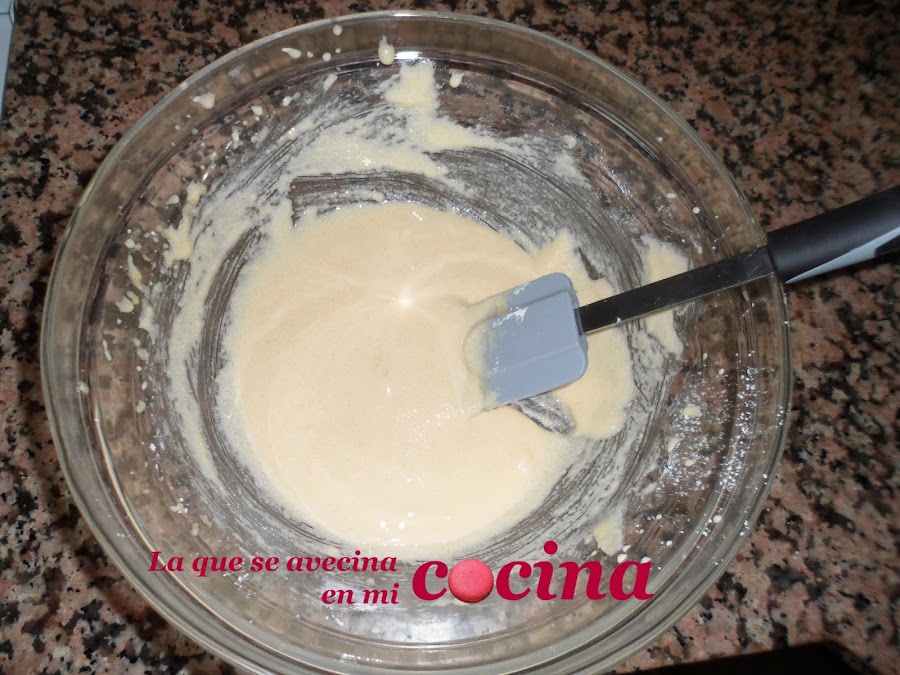 Es entonces cuando se la iremos añadiendo poco a poco a la mezcla blanquecina que hemos hecho antes.