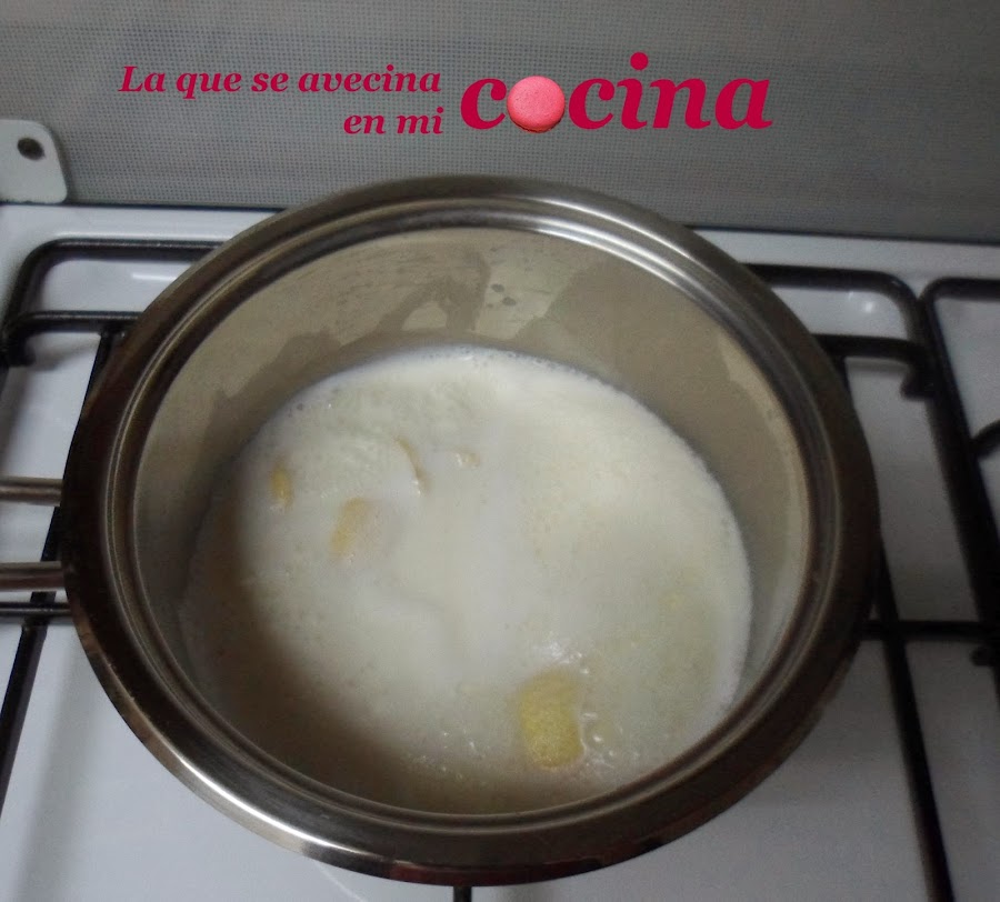 Primero ponemos en un cazo la leche, la piel del limón y la rama de canela y lo calentamos a fuego medio. Lo dejaremos hasta que llegue a ebullición, es entonces cuando lo retiraremos del fuego y lo dejaremos tapado unos 10 minutos para que coja mejor aún el sabor del limón y de la canela, a modo de infusión.