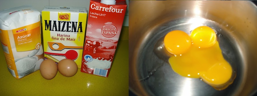 Ponemos las yemas en una olla, le añadimos el azúcar y removemos con una varilla de batir, agregamos un pelín de leche y la Maizena, lo mezclamos bien todo para que no tenga grumos, poco a poco echamos el resto de la leche.