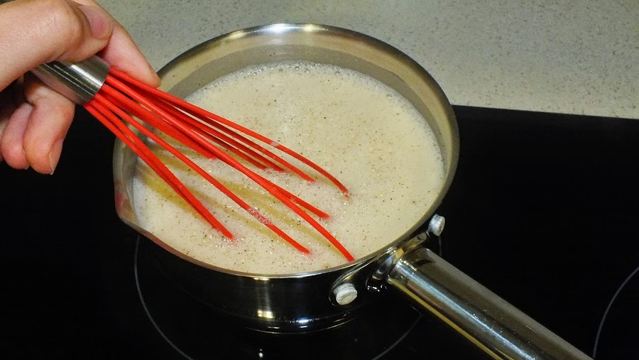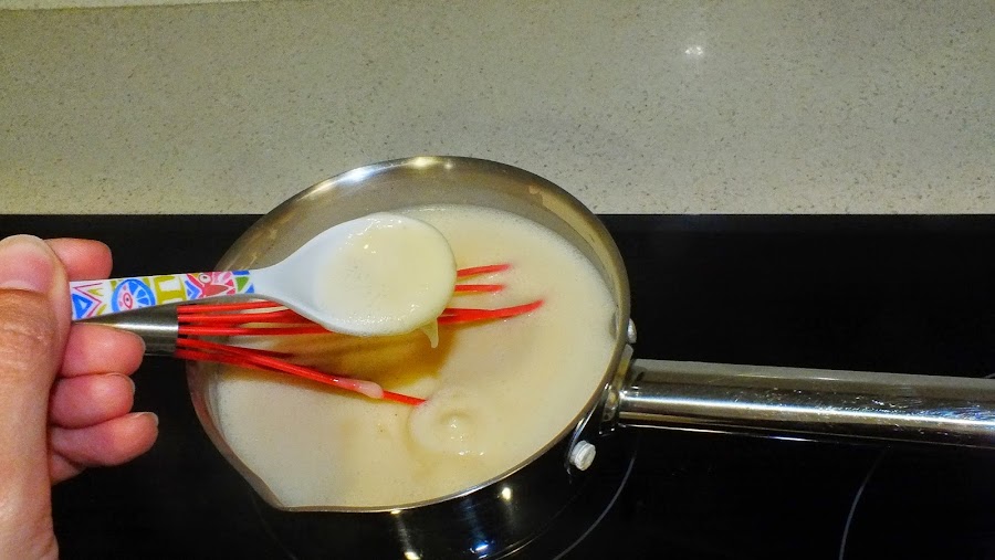 Colocad la mezcla en una olla y cocinad a fuego lento, siempre sin parar de remover