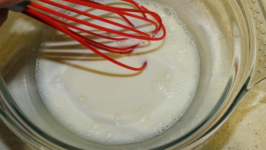 Coged las yemas y las batís y añadís poco a poco la leche