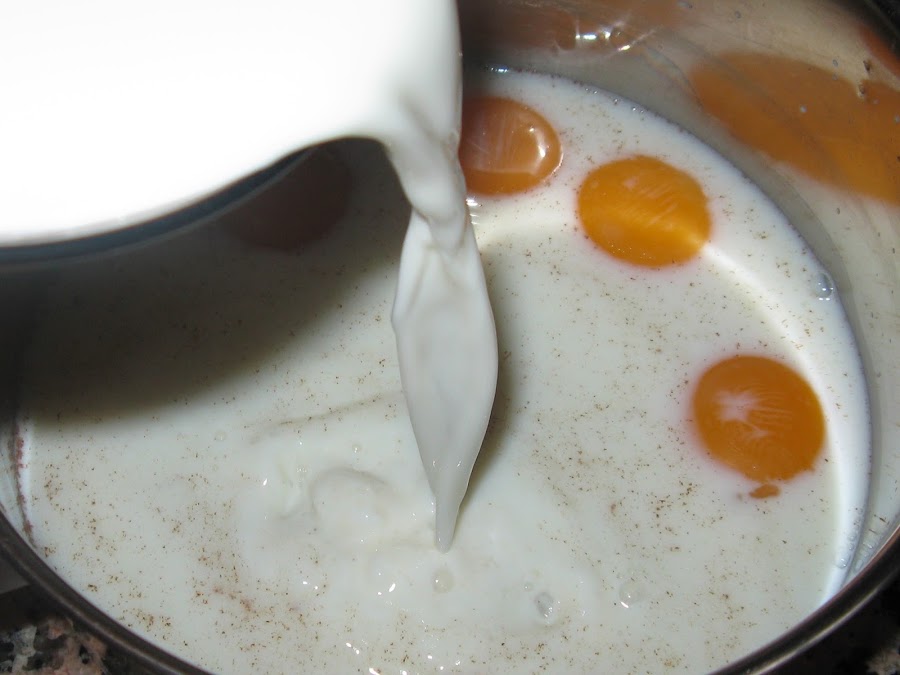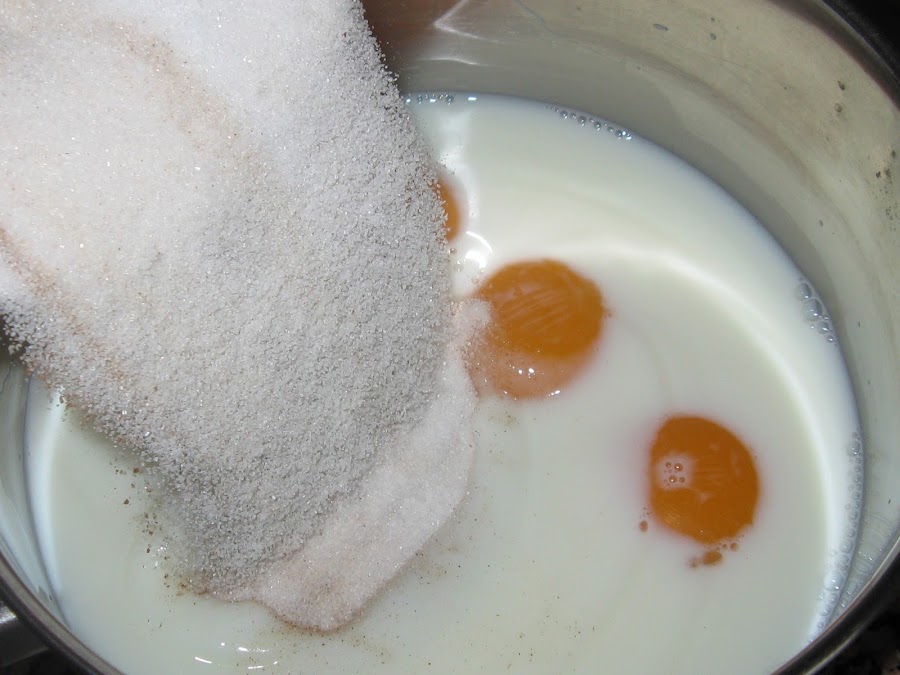 Echamos en un recipiente las 4 yemas, la mitad de la leche y el azúcar junto con la cucharadita de canela