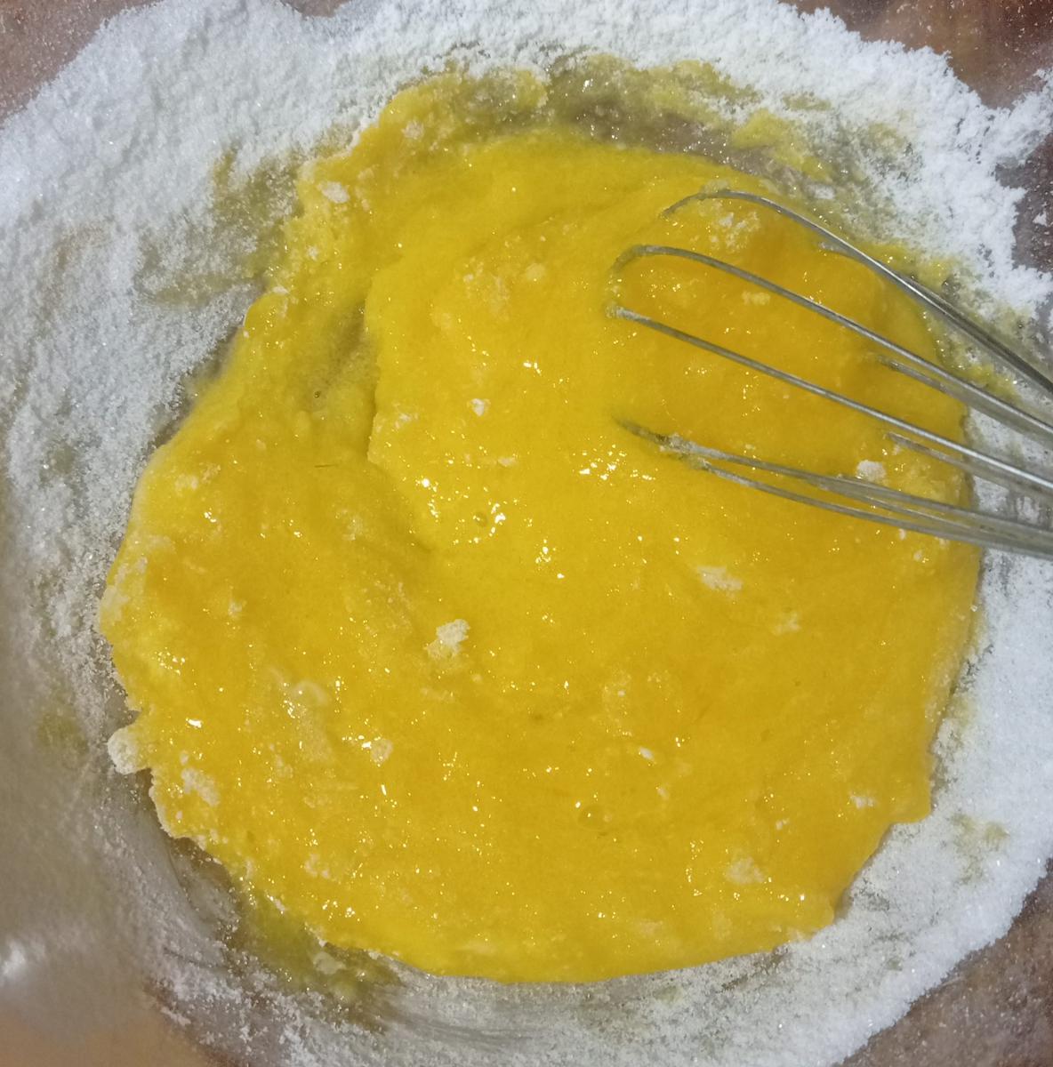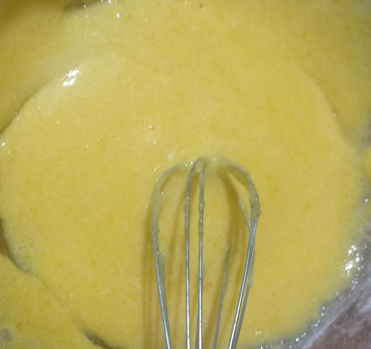 Batir las yemas con el azúcar y la fécula, solo para integrar.Volcar la leche sobre la mezcla de huevos y revolver bien