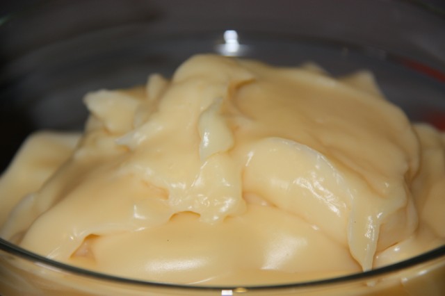 La colocamos en un bol y tapamos con film transparente, el film debe de estar pegado a la crema, evitando el aire, así no se reseca la capa superior y no se hace costra.