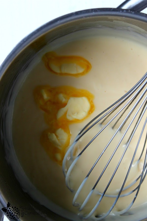 5. Retiramos del fuego, añadimos los dados de mantequilla y removemos hasta que se disuelvan