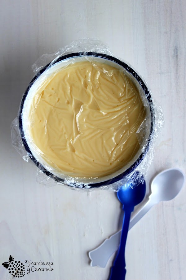 6. Cubrimos con papel film tocando la crema y dejamos enfriar primero a temperatura ambiente, después en la nevera