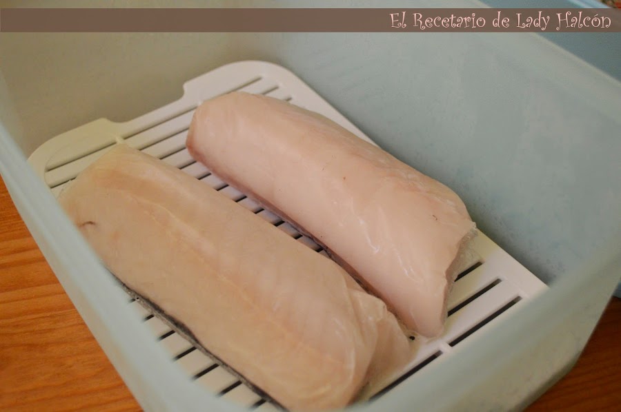 Un día antes coloca los lomos de merluza en una fiambrera con rejilla para que se vaya descongelado poco a poco.