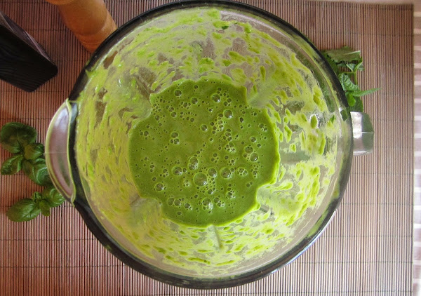 Sin embargo no fue de un inglés de quién saque esta receta, sino de un italiano. De ahí, la aromática y no menos sabrosa albahaca. Fue todo ese verde unido lo que me conquistó y me animó a probar esta crema que si bien es extraña al principio también es deliciosamente dulce, arómatica y fresca.