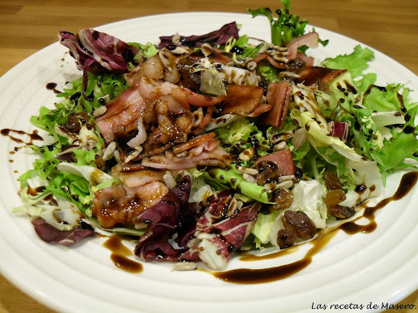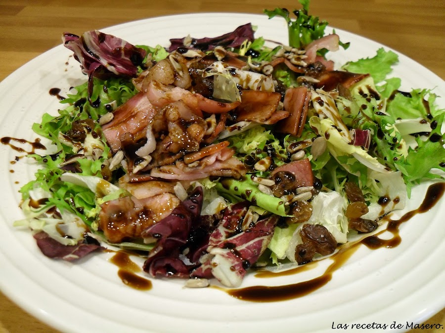 Añadimos a la lechuga las pasas, las pipas y beicon al gusto.