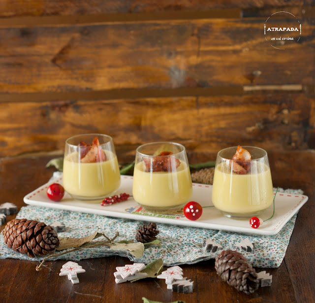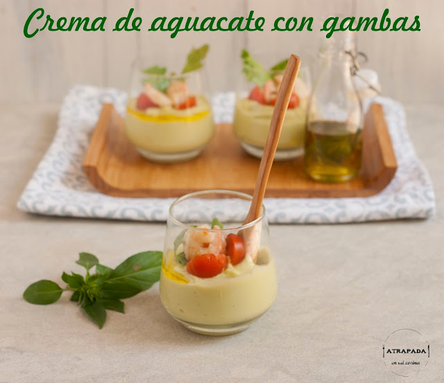 2. Crema de aguacate con gambas: no todas las cremas son calientes, y esta crema recuerda una ensalada tomada con cuchara...refrescará vuestras mesas navideñas.