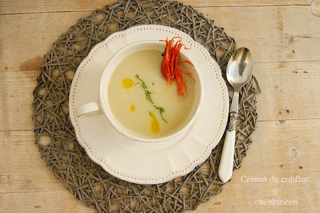 8. Crema de coliflor y carabinero: otra crema de coliflor, esta vez combinada con unos carabineros. Otra crema que seguro que os va a encantar, y que si preferís podéis combinar con otro tipo de marisco, como gambas por ejemplo.
