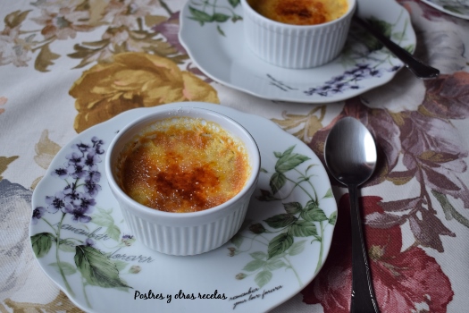 Justo antes de servir espolvoreamos la superficie de las cremas con un poco de azúcar y lo quemamos con un soplete de cocina o con una pala especial para quemar.
