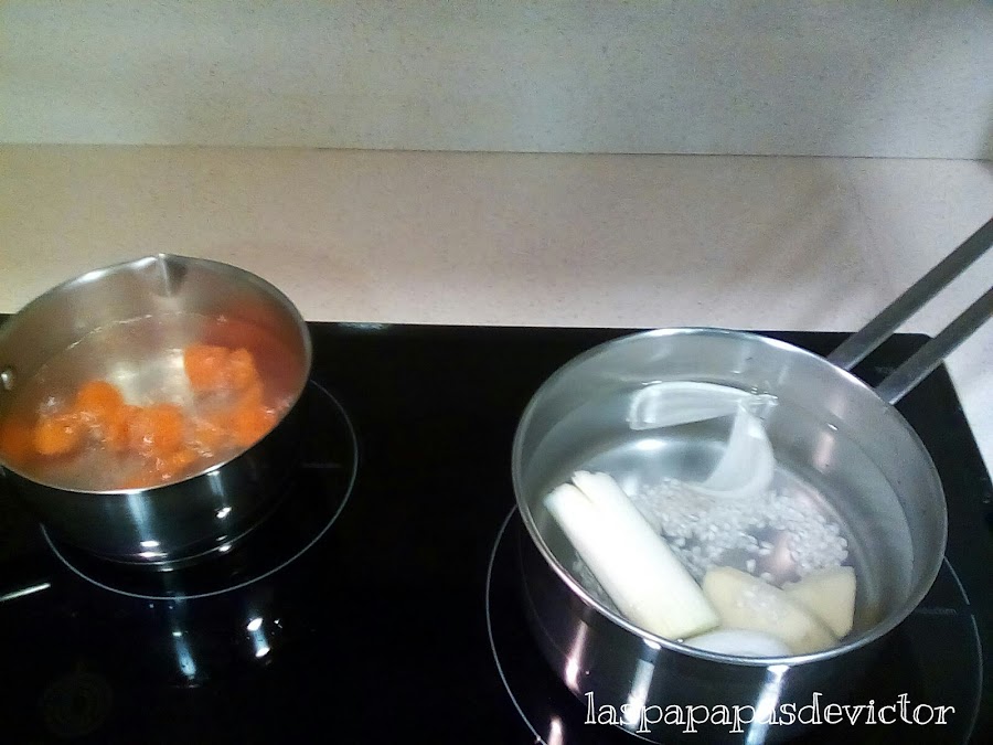 En otro cazo más pequeño poner agua a hervir y la zanahoria para que suelte los nitratos