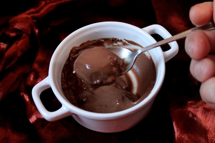 Este postre es una ganache suave que se asemeja más a un flan y que se hace con el horno apagado. Si si, primero lo precalentamos y cuando metamos los postres lo apagamos y dejamos que se haga con el calor residual.