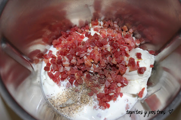 Si compramos el jamón en tacos lo trituramos unos 10 segundos a velocidad 5-10. Si no comprais el que viene ya en taquitos pequeños.