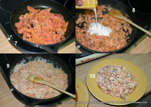 9- Movemos bien y dejamos que la nata (crema de leche) reduzca unos minutos hasta que quede una masa homogenea