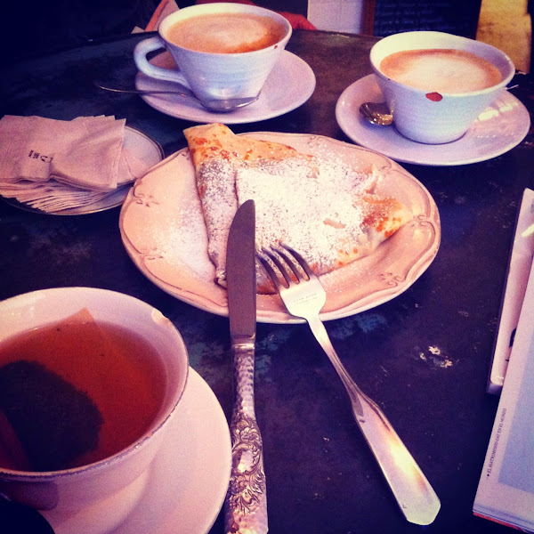 Yo que era la única dulcera del grupo me tomé un té blanco con un crepe de Nutella y plátano que estaba de muerte. De los mejores crepes que me he comido en mi vida seguro.