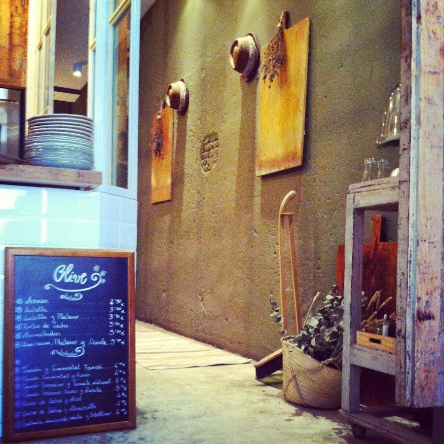 Olive se sitúa frente al Centro Cultural Conde Duque. Es un café muy pequeñito pero agradable, luminoso y decorado con mucho encanto: paredes recubiertas de madera, muebles recuperados y muchas flores. Tienen una exquisita selección de libros y revistas que nos vinieron de maravilla: todos sufrimos un momento de desconexión ojeando las revistas.