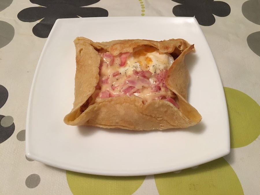 - Fríe un huevo en abundante aceite caliente y colócalo en el centro del crêpe.