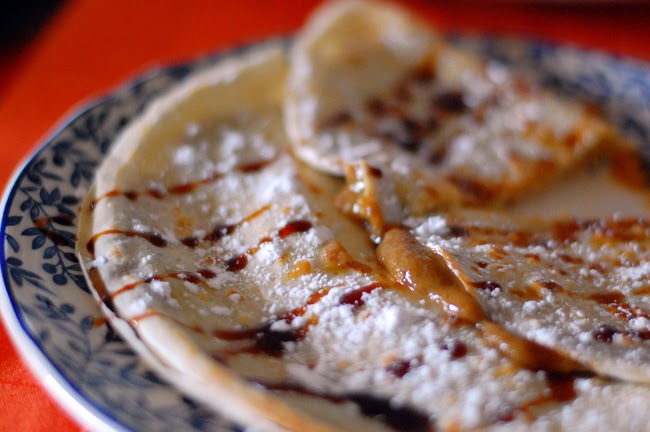 Bueno, pues aquí tienes el plan C, una salsa de caramelo al estilo toffee donde se fundirá y dará su toque a la perfección. Con decirte que a Álex no le gusta al plátano y disfrutó del todo los crepes...