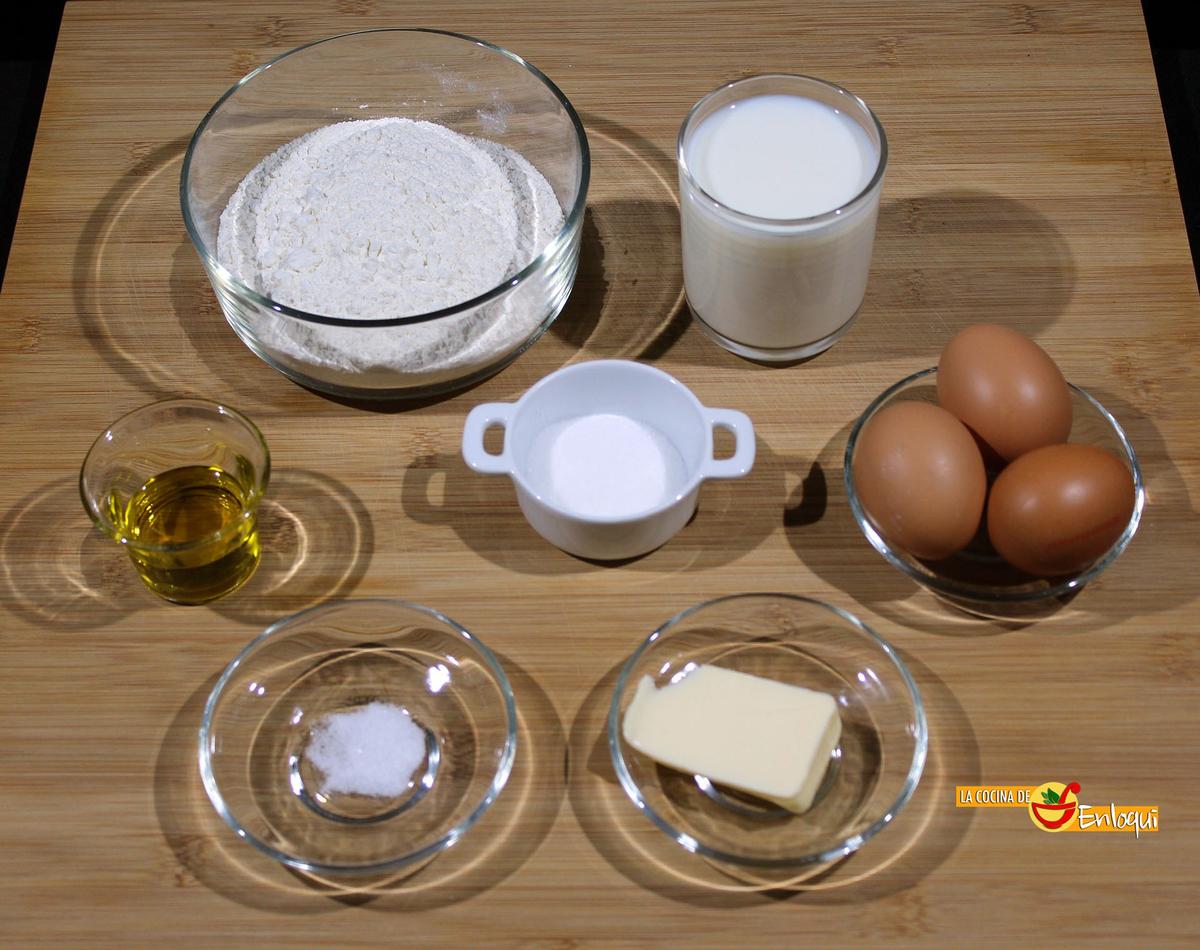 Vamos a comenzar preparando las crepes dulces. Para ello debes poner en un bol los huevos, el azúcar, la leche y el aceite. Bate con las varillas. Si son eléctricas mucho mejor.