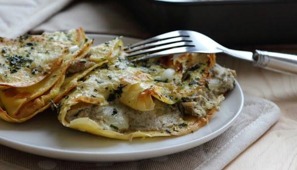 Dobla cada crepe por la mitad y colócalos en una bandeja para hornear. Agrega algunos rizos de mantequilla en la parte superior y ralla parmesano cubriendo las crepes. Si deseas, coloca un par de lonchas de alcachofas. Precalienta el horno a 180 grados y hornea la bandeja de crepes durante 20 minutos.