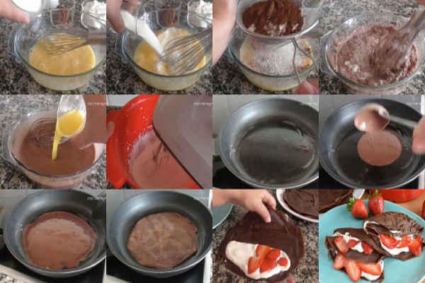 Vídeo receta; crepes de chocolate con fresas y nata (crema de leche):