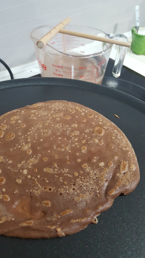 Una de estas tardes de domingo, fue tarde de chocolate. Hicimos nutella, galletas de chocolate y mi niño quería crepes. Como es tan chocolatero, me dije, hoy hasta las crepes. Deleite de la vista y de los sentidos para mi niño, no os podéis imaginar lo que disfrutó. Las podéis comer solas, con azúcar, con nutella, con mermelada de fresa