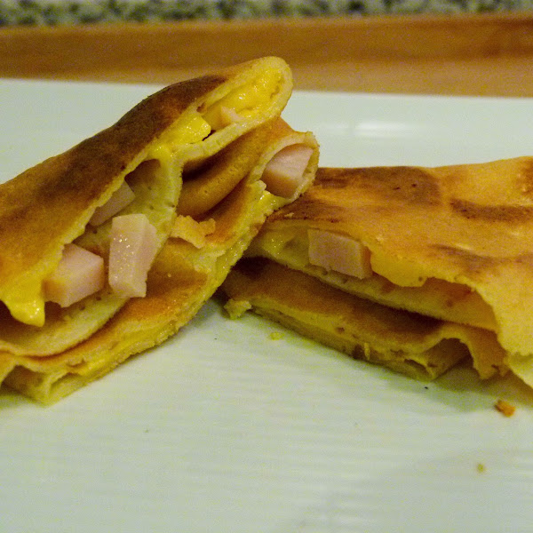 2.Solamente en una mitad ponemos jamón y queso (al gusto)