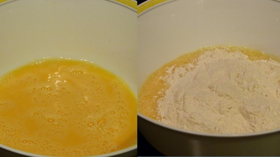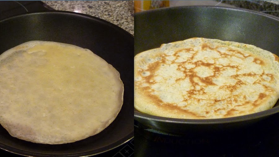3)Echamos una pequeña cantidad de la masa en la sartén previamente calentada