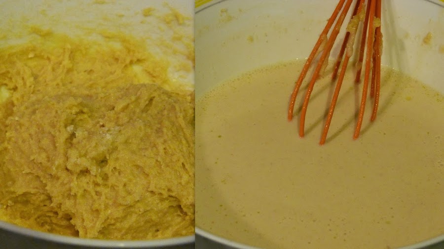 2)Incorporamos la leche, un chorrito de aceite y removemos